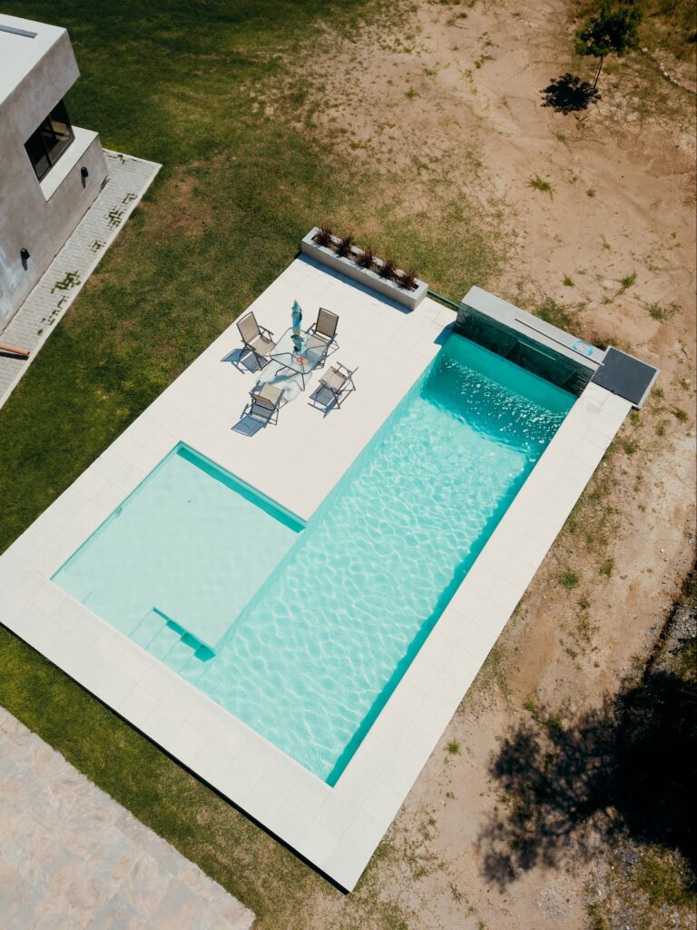 Nuestras piscinas están equipadas con purificador, skimmers, retornos orientables y/o hidromasajes zonificados (Yacuzzi) colector de fondo.