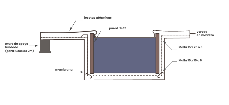Para el llenado utilizamos doble encofrado del lado interior de trabaja con encofrado pedido construido con mamposteria de ladrillos de 15 cm elevadas con mortero (cemento y arena). Riesgo de fuga cero ya que tenemos especial cuidado en los procesos de impermeabilizacion.